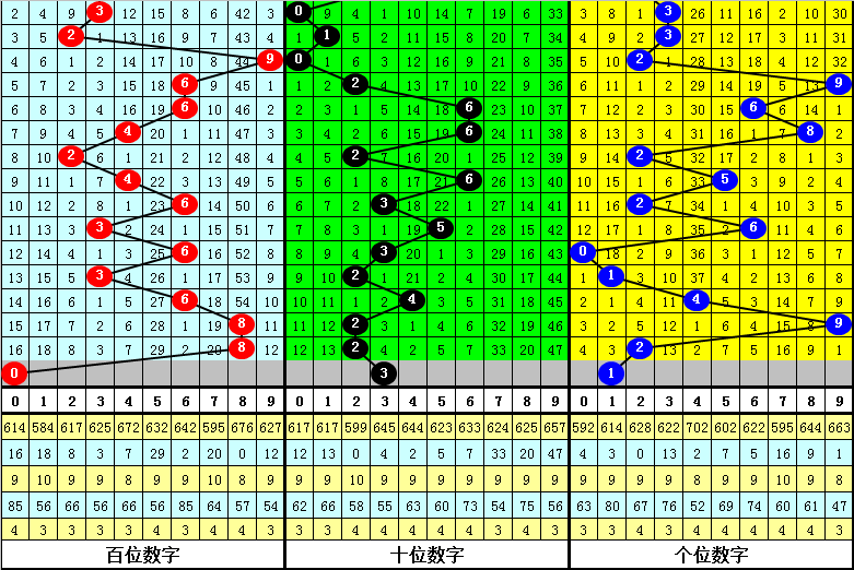 跨度分析:最近5期分别开出跨度:6、2、2、7、6,本期注意跨度走小,参考跨度3。