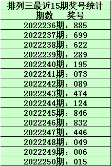 开奖回顾:排列三第2022250期开出奖号:015,其类型为:组六,直选形态为:偶奇奇、小小大、012路、热冷温、合质质。