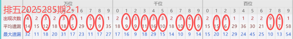2025282期开奖号码09691,万位近30期0出现3次数 ,千位近30期9出现3次数(较283期减一),百位近30期6出现2次数 ,十位近30期9出现3次数 ,个位近30期1出现5次数 。