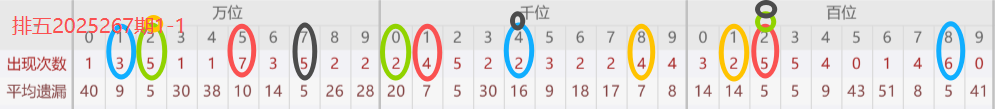 下图所圈出的为近30期各位置所出现的热码出现次数及平均遗漏值,用以参考和一些冷码组合选号。