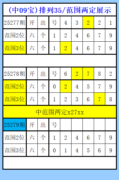 排列35第279期图文(中09宝),范围两定展示,上期中范围x27xx