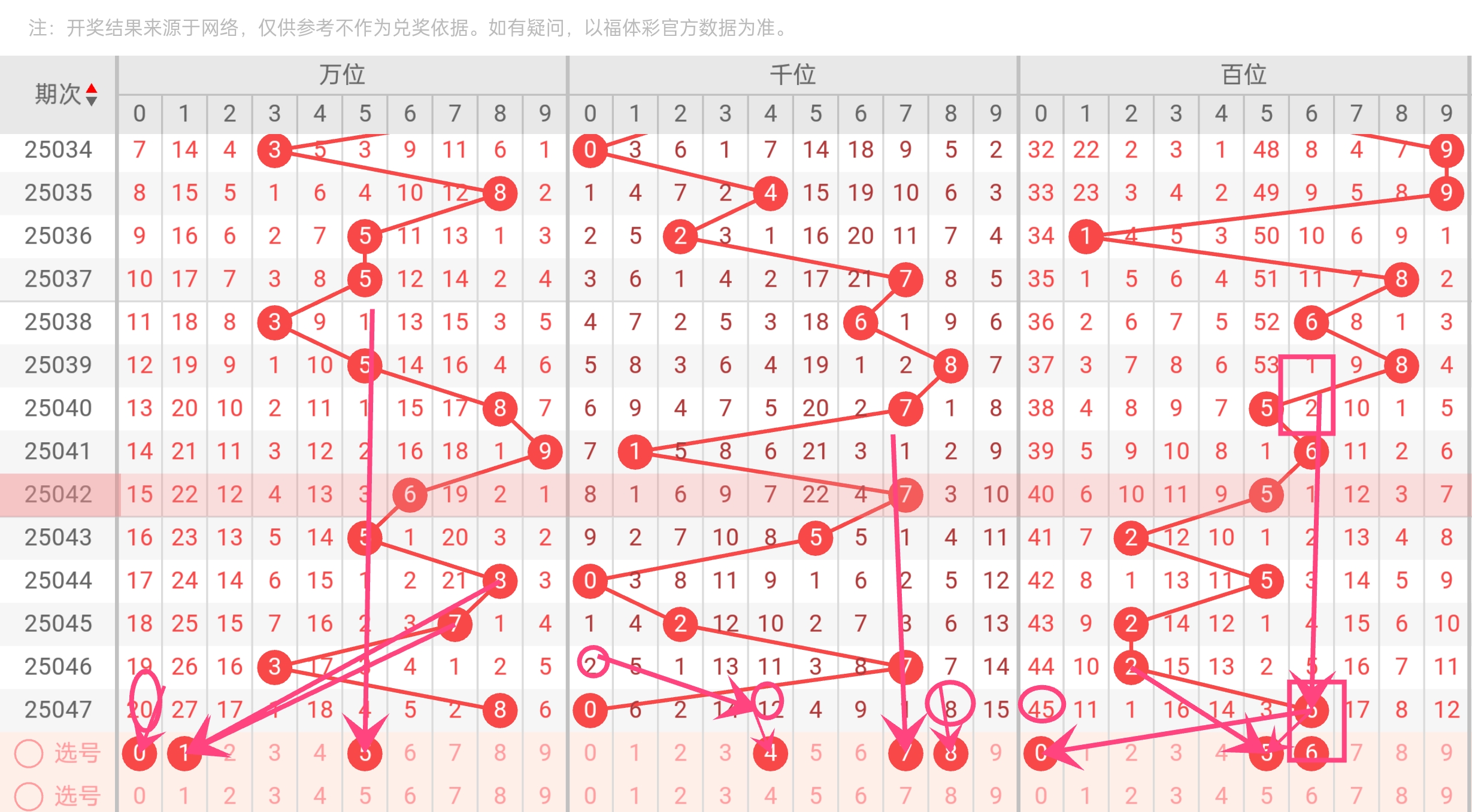 - 第四位:近10期“8”出现3次(中热号),且与上期“5”形成跨度3(5→8),历史类似跨度出现概率为22%(如2025042→2025043期“5→2”)。