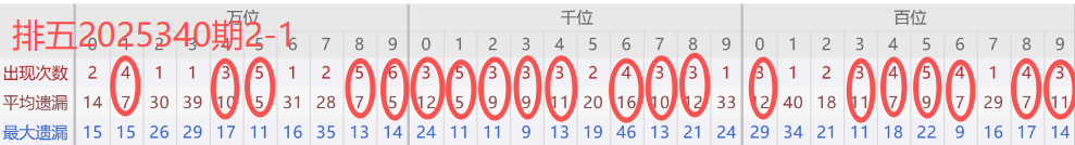 2025337期开奖号码55438,万位近30期5出现5次数(较339期减一) ,千位近30期5出现2次数,百位近30期4出现4次数 ,十位近30期3出现3次数 ,个位近30期8出现3次数 。