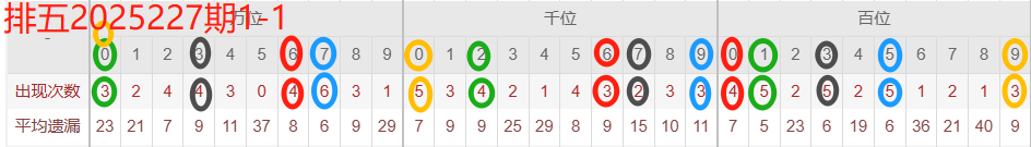 下图所圈出的为近30期各位置所出现的热码出现次数及平均遗漏值,用以参考和一些冷码组合选号。
