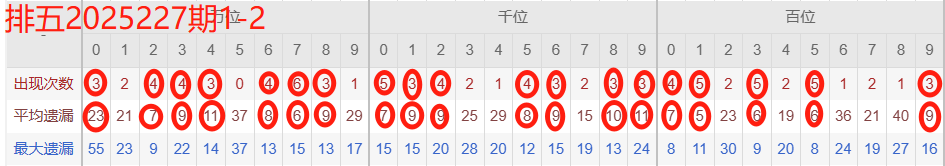2025224期开奖号码02192,万位近30期0出现2次数 ,千位近30期2出现4次数,百位近30期1出现5次数(较226期减一) ,十位近30期9出现5次数(较225期减一) ,个位近30期2出现2次数 。