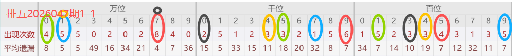下图所圈出的为近30期各位置所出现的热码出现次数及平均遗漏值,用以参考和一些冷码组合选号。