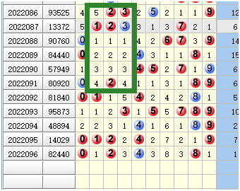 我们看到上面图表,085期开出89组合,结果086期开出胆码9,091期看开出89组合,092期开出胆码8,所以这样的办法非常好。二连码我们在排三里也说过,每当排5里形成二连码的时候就要关注它的掉号模式,如图方框内号码就是二连码在排5里几乎期期落号,大家强烈关注吧,这样也是一种选胆码的办法。