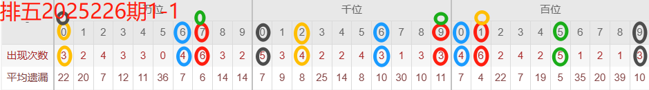 - 各位置出现频率:查看近30期数据,万位0出现3次,千位0出现5次,百位9出现3次,十位0出现3次,个位7出现5次。