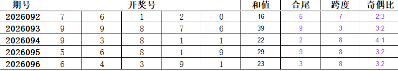 体彩排5第2026096期开出中奖号码为64391。下面来详细剖析各位置数据: