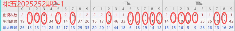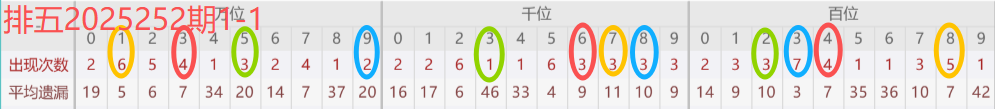 下图所圈出的为近30期各位置所出现的热码出现次数及平均遗漏值,用以参考和一些冷码组合选号。