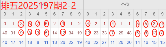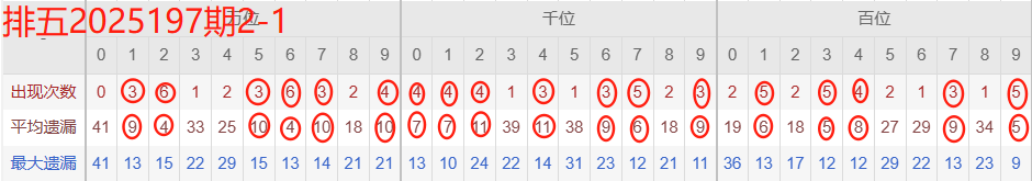 2025195期开奖号码21090,万位近30期2出现5次数 ,千位近30期1出现4次数,百位近30期0出现2次数 ,十位近30期9出现2次数 ,个位近30期0出现3次数 。