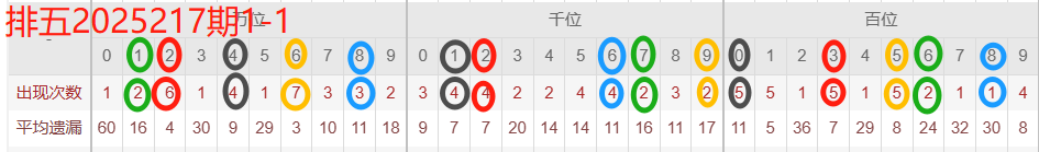 下图所圈出的为近30期各位置所出现的热码出现次数及平均遗漏值,用以参考和一些冷码组合选号。