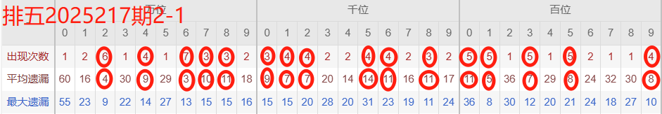 2025213期开奖号码86857,万位近30期8出现3次数 ,千位近30期6出现4次数,百位近30期8出现1次数 (较215期减一),十位近30期5出现5次数 (减位回补),个位近30期7出现3次数 。