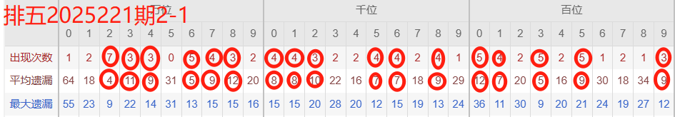 2025217期开奖号码24207,万位近30期2出现7次数 ,千位近30期4出现2次数,百位近30期2出现2次数 ,十位近30期0出现1次数 ,个位近30期7出现5次数 。