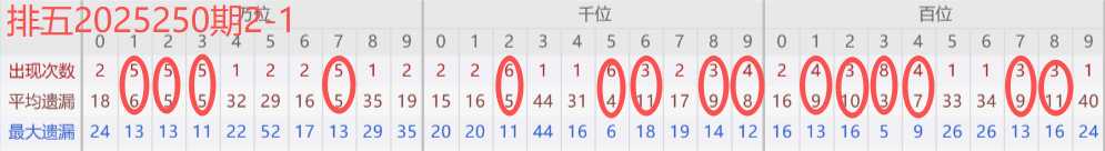 2025248期开奖号码98385,万位近30期9出现2次数 ,千位近30期8出现3次数(较249期减一),百位近30期3出现8次数 ,十位近30期8出现3次数 ,个位近30期5出现4次数 。