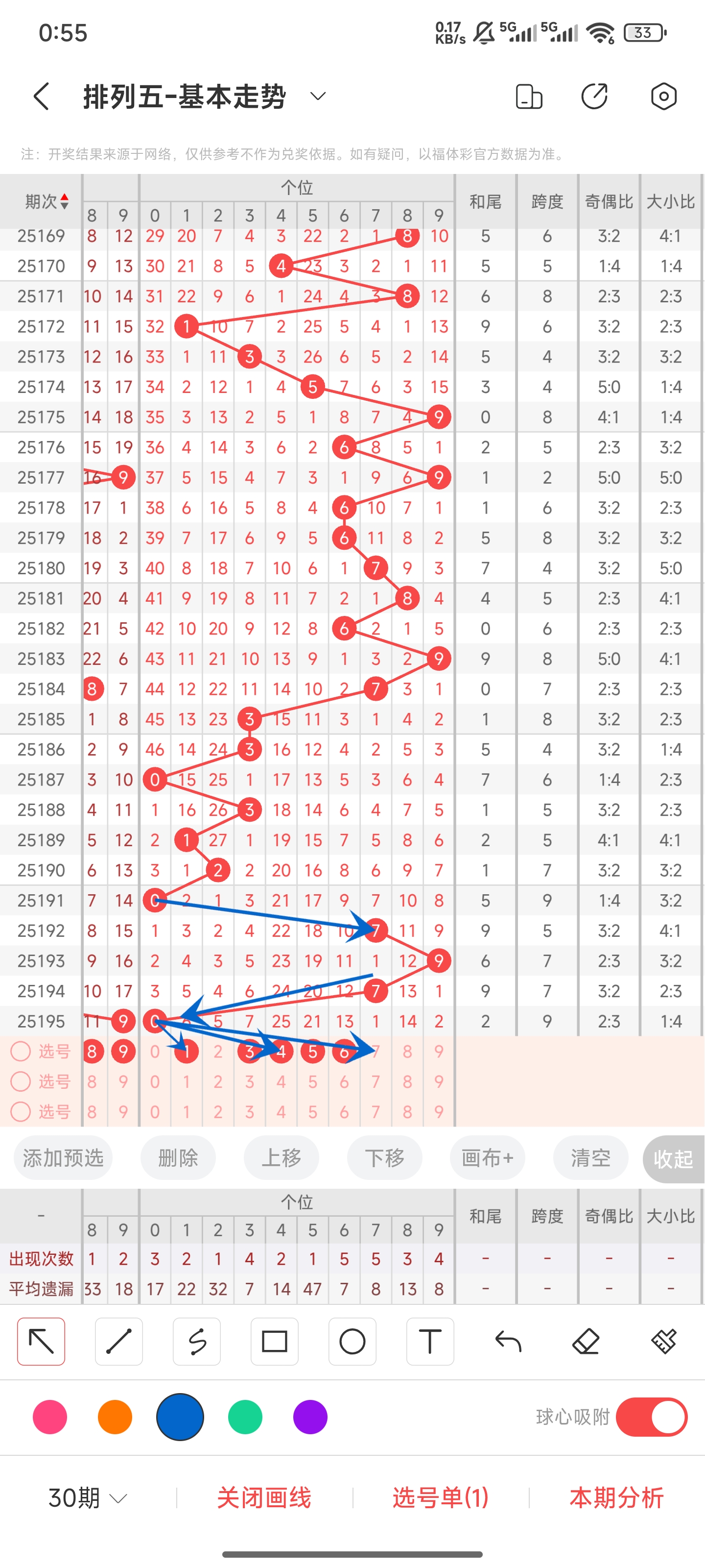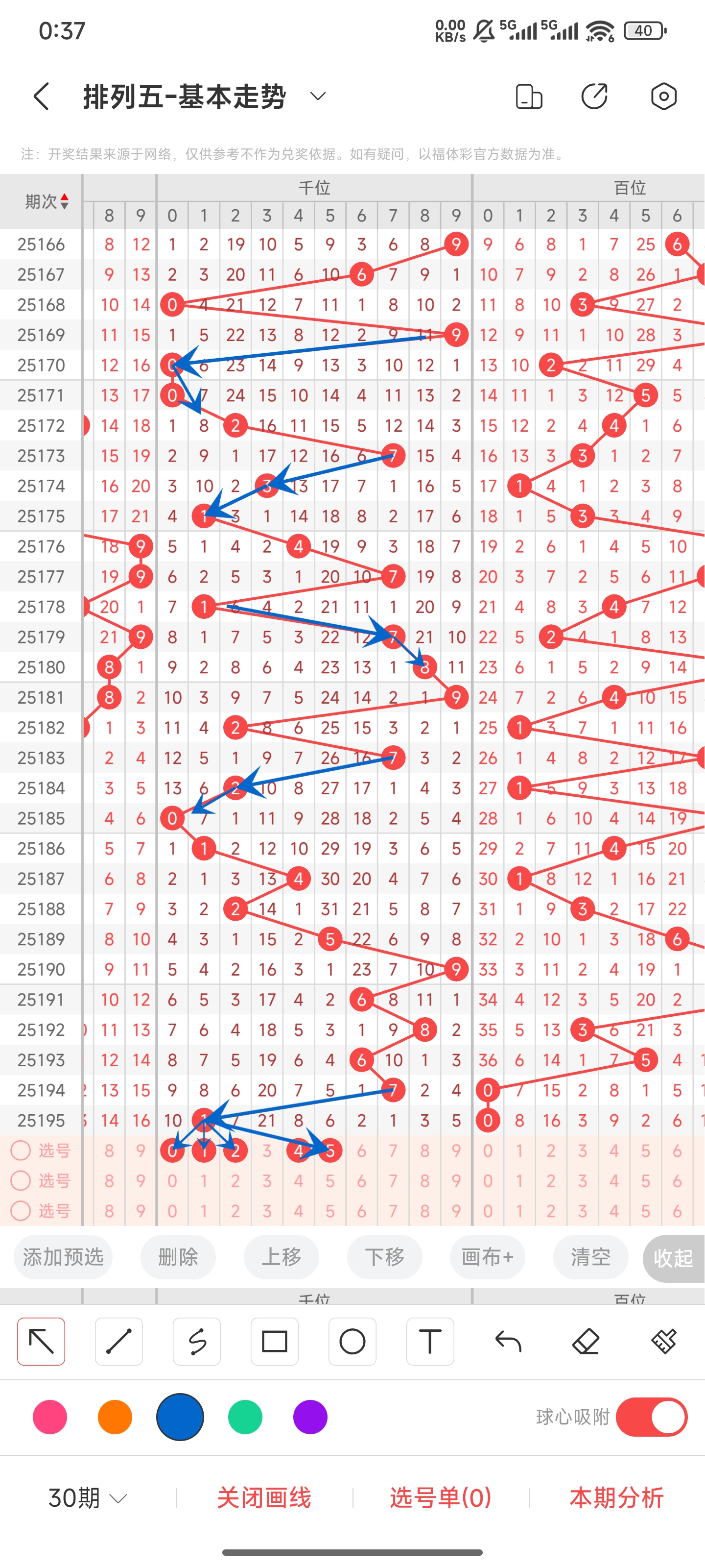 上期开出的是0号,往前一期也是0。0号是属于最冷的号进行了回归。遗漏了36期后回归。并且进行了连续两期回补。那么本期应该不会再继续开出了。通过分析走势图,我们可以看到走势都比较有规律的,基本上都是左右左右这样子走。目前趋势是往左的我们可以,关注一下距离较近和不太远的号,例如01,02,03,04,05。那综上所述本期可能开出01,02,03,04,05等数。