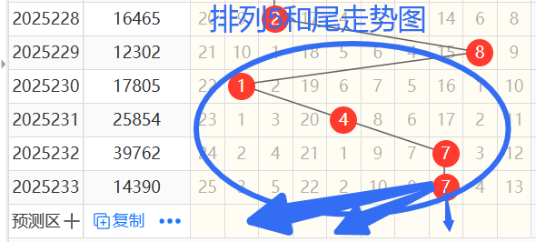 依次是81477和尾,按照012路排序是21111路和尾,后面两期是同路,今天就是0路或1路的和尾,为什么这么讲呢,这个是个大概率的问题,也是根据长期的研究规律定的,准确率相当高,我们定了0 1路的和尾,也就是0369147和尾,1路尾面临开四进五,本期看1路尾,那么我们再来看和值,按照和值除3余数的话,可以分为余0 1 2路. 那么我们来看和值余数:229期和值8余2,230期和值21余0,231期和值24余0,232期和值27余0,233期和值17余2,结合路数关系来讲,所以和值可余1和余0,结合上面的和尾的话就只有147尾, 这几个尾数。和值的话就是21 24 27 31 这几个和值。