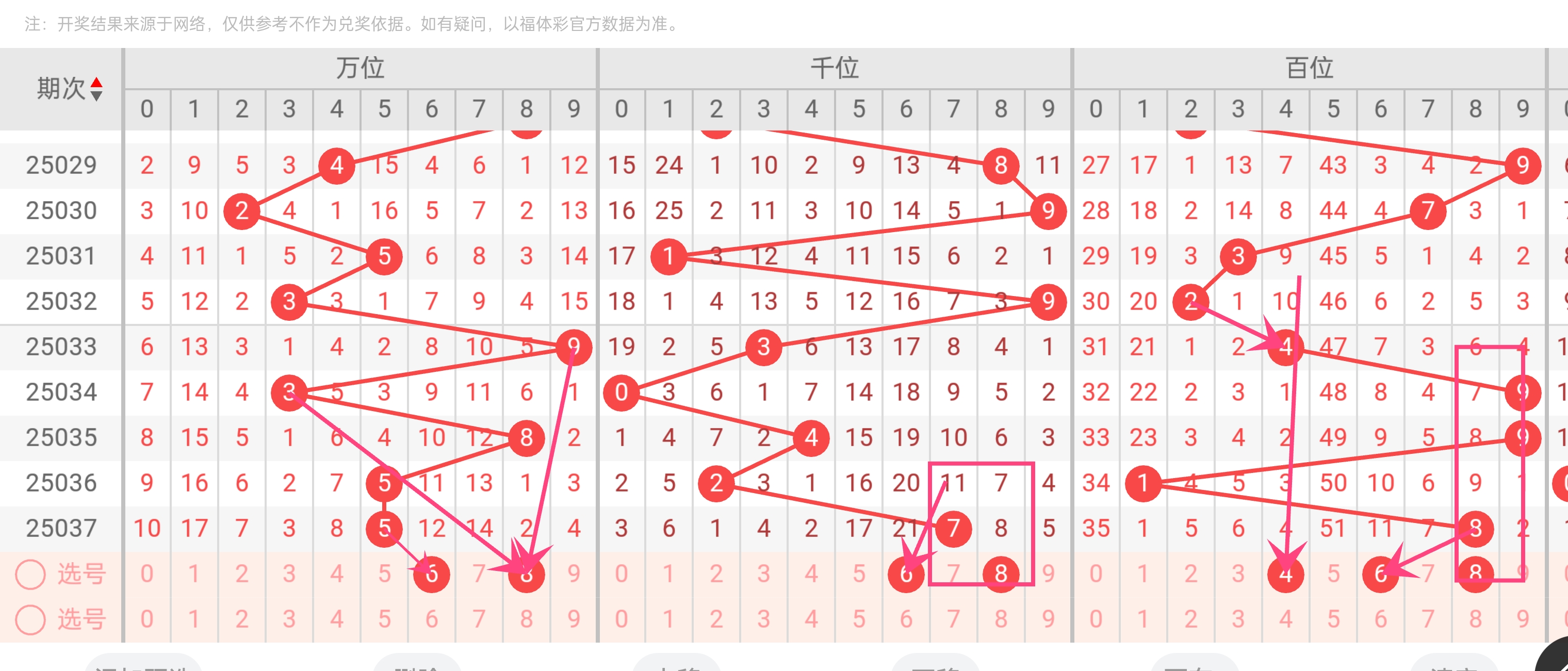 我分析排列三选择得2个号码组选【48】全拖一注同样也是我买的号(分析过程排列五直接用,想看得点击头像查看同期排列三2码全拖分析技巧),经过我的综合分析图中我选择得万位号码是6,千位号码是8,百位号码是4,图中标记万位得6是重复号相邻走势技巧落号,优先级在我这远远高于百位间隔过大冷号回补得走势技巧高于百位间隔周期相似得走势技巧。千位数字8是间隔周期是同路号相似得走势技巧要比百位矩形区域内重复号相似走势技巧概率要大,百位数字8和6都没有千位和百位大,根据走势技巧我分析百位号落号4.我选择得排列五前三位684知道跨度是4,满足我上文分析得排列五跨度杀号关系,根据这一数关系,并通过数学计算知道排列五十位和个位不能单独出现2,接下来根据走势图缩水十位个位号码。