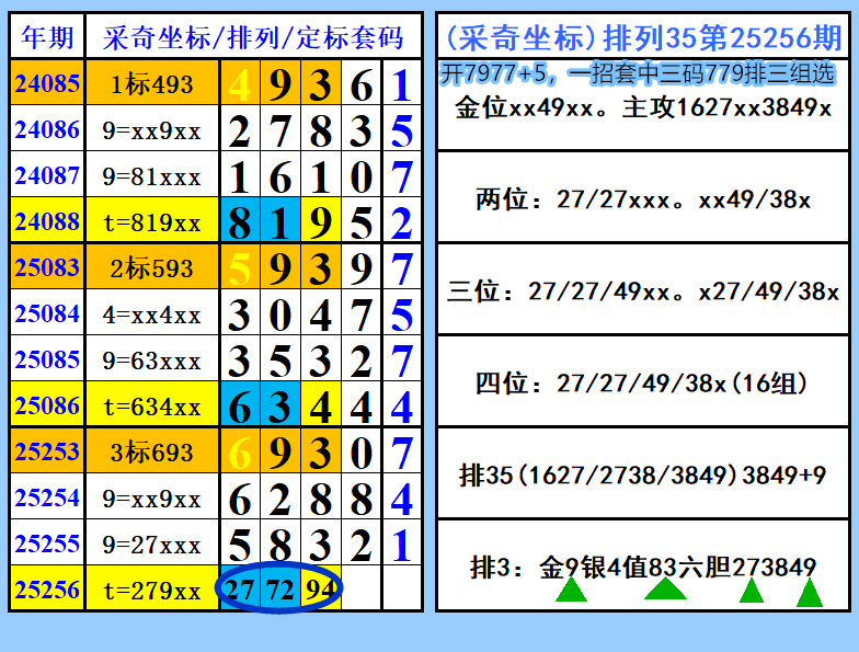 视频(采奇坐标)经典回顾,排列35第25256期,一招套中三码779排三组选