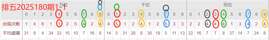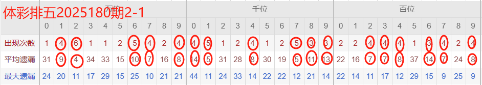 下图所圈出的为近30期各位置所出现的热码出现次数及平均遗漏值,用以参考和一些冷码组合选号。
