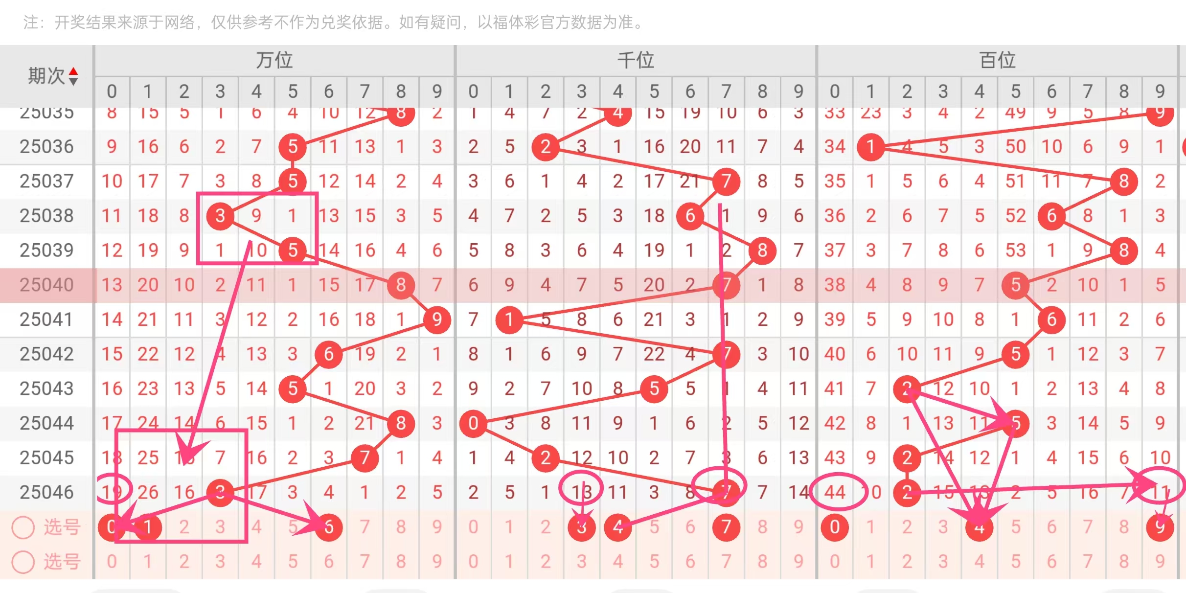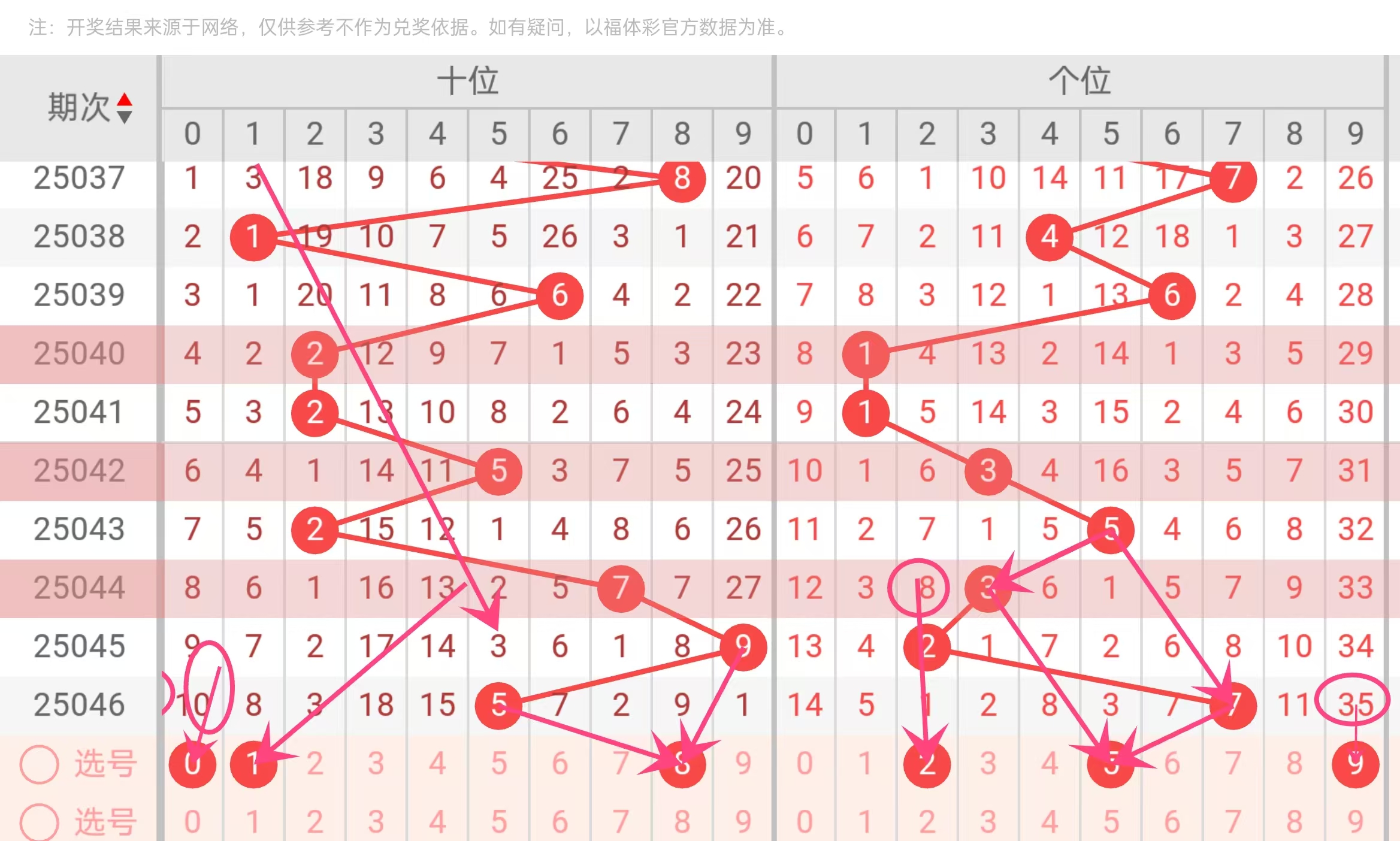 - 第四位:近15期“8”出现5次(热号),且与上期“5”形成跨度3(5→8),类似跨度在2025044→2025045期“7→9”中出现概率为22%。