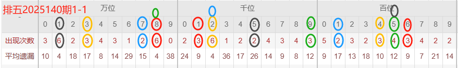 - 各位置出现频率:查看近30期数据,万位1出现6次,千位5出现2次,百位5出现4次,十位7出现3次,个位5出现3次。