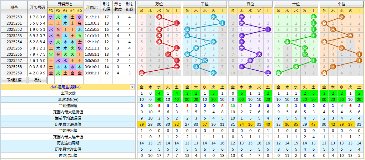 - 总结:上期推荐在万位、千位、百位准确,排三命中,但十位和个位推荐错误,因未能预见到“金”会如此强势,导致错过了最重要的奖号。