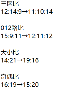 列出近10期每5期的012路、三区比、大小比、奇偶比