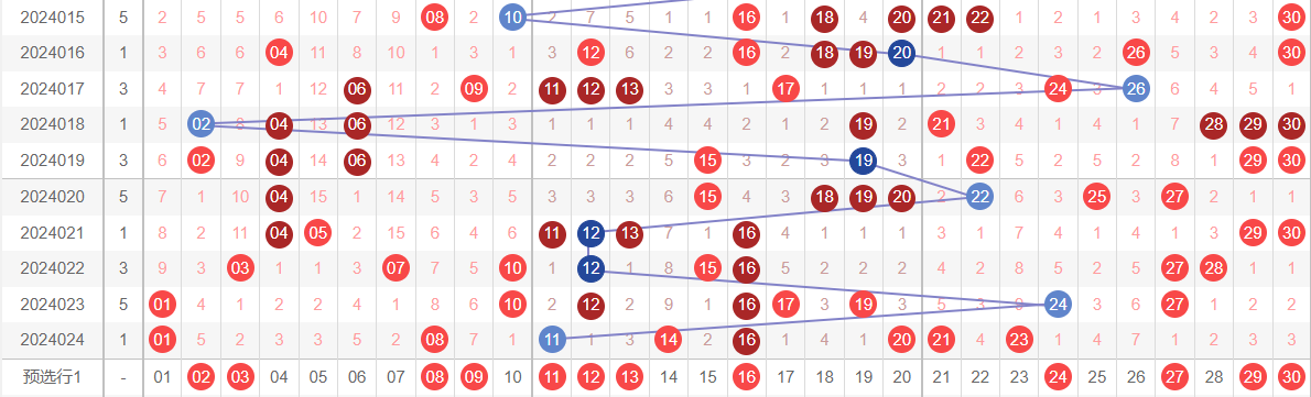 ②同星期近30期用规律走势选出15个号码