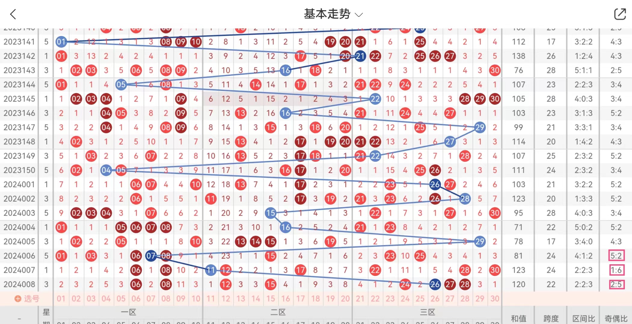上期(2024008期)奇偶比2:5 区间比2:2:3