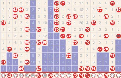上期回补开出来7个号码球,本期走势应该在4~5枚奖号左右,首先关注 73 74 75 78应该会走出至少一码,其次要关注的67,本期大概率作为重复号码开出来;接下来69这个大冷最近可以关注了!