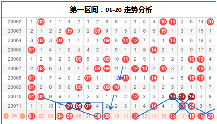 一区继续保持上升势头,连码和走势码依然占据主导,看来这个走势周期对一区的促进作用很大。本期思路,一区还是围绕走势展开,同形态号码很多,还是要注意选择。虽然上期开出的连码较多,但结合走势周期来看,规律斜连号还是要重点去做的。上期18的形态回补给我们提了一个醒,回补号码也是本期要去注意的。