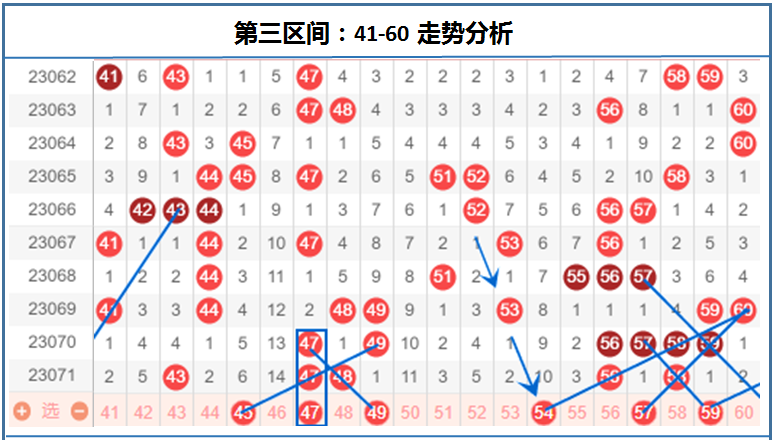 三区的走势比较微妙,热态区间还是维持着热度,而且没有分边的走势,这种情况就要小心了,上期的43以独码形态开出后,本期就要注意分边走势了。预测本期三区的独码会有两枚,也意味着没有断区的风险,但也不会有强势的大连码出现。本期三区在做走势的同时还要注意一下回补号码,特别是两种形态交集的号码是一定要去重点关注的。
