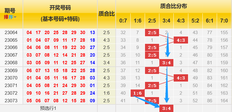 根据计算,上期质数和值为12,合数和值为69,质合和值差为57,上期正常下移回到2:5,但近十期总体还是在热值区间跳跃,考虑蓝色标注斜率以及遗漏的对称走势,故本期注意5期遗漏值3:4