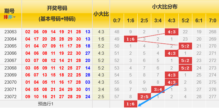 根据计算,上期小数和值19,大数和值121,小大和值差102,看近五期差值分别为12、24、40、87、102,差值越来越大,据此趋势下去,预计和值差还要继续走大,再根据小大斜率走势来看,本期小大比预计会移到1:6,这也跟前面预计有大和值差相符。
