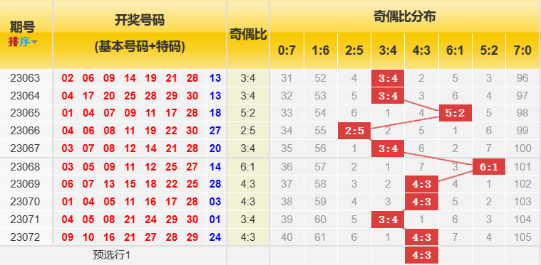 根据计算,上期奇数和值86,偶数和值54,奇偶和值差为32,看近五期差值分别为68、14、14、11、32,奇偶比往小数方向移动,预计本期还在这个区间波动为主,根据对称走势我们要看4:3。