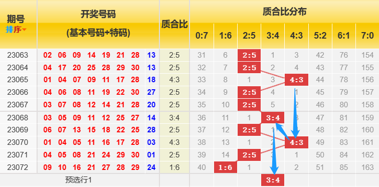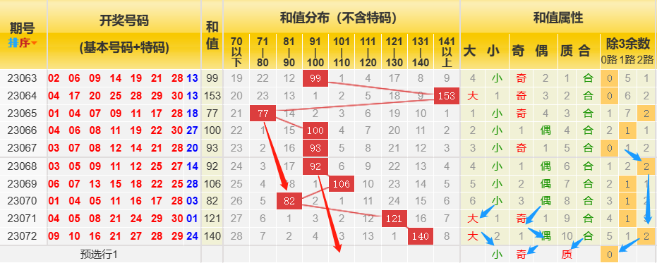 根据计算,上期质数和值为29,合数和值为111,质合和值差为82,上期出妖1:6,但近十期总体还是在热值区间跳跃,考虑蓝色标注的对称走势,故本期注意4期遗漏值3:4
