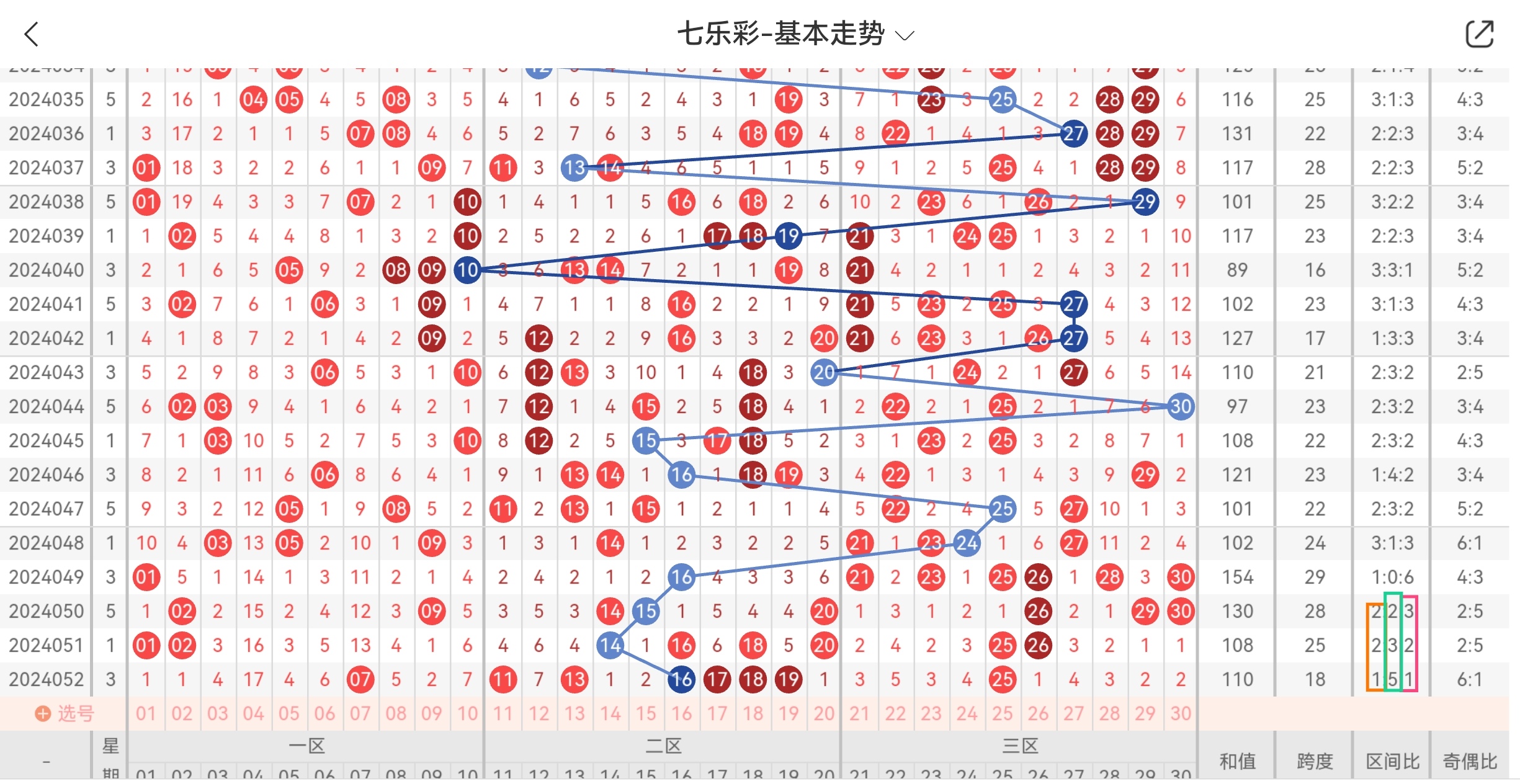 上期(2024052期)奇偶比6:1 区间比1:5:1