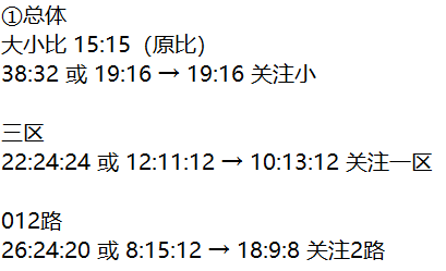 大底12个命中3+1(后面的1是特殊码),上期本期考虑关注小数、一区(11~20),开奖号码中小数有3、10、12,一区有3、10