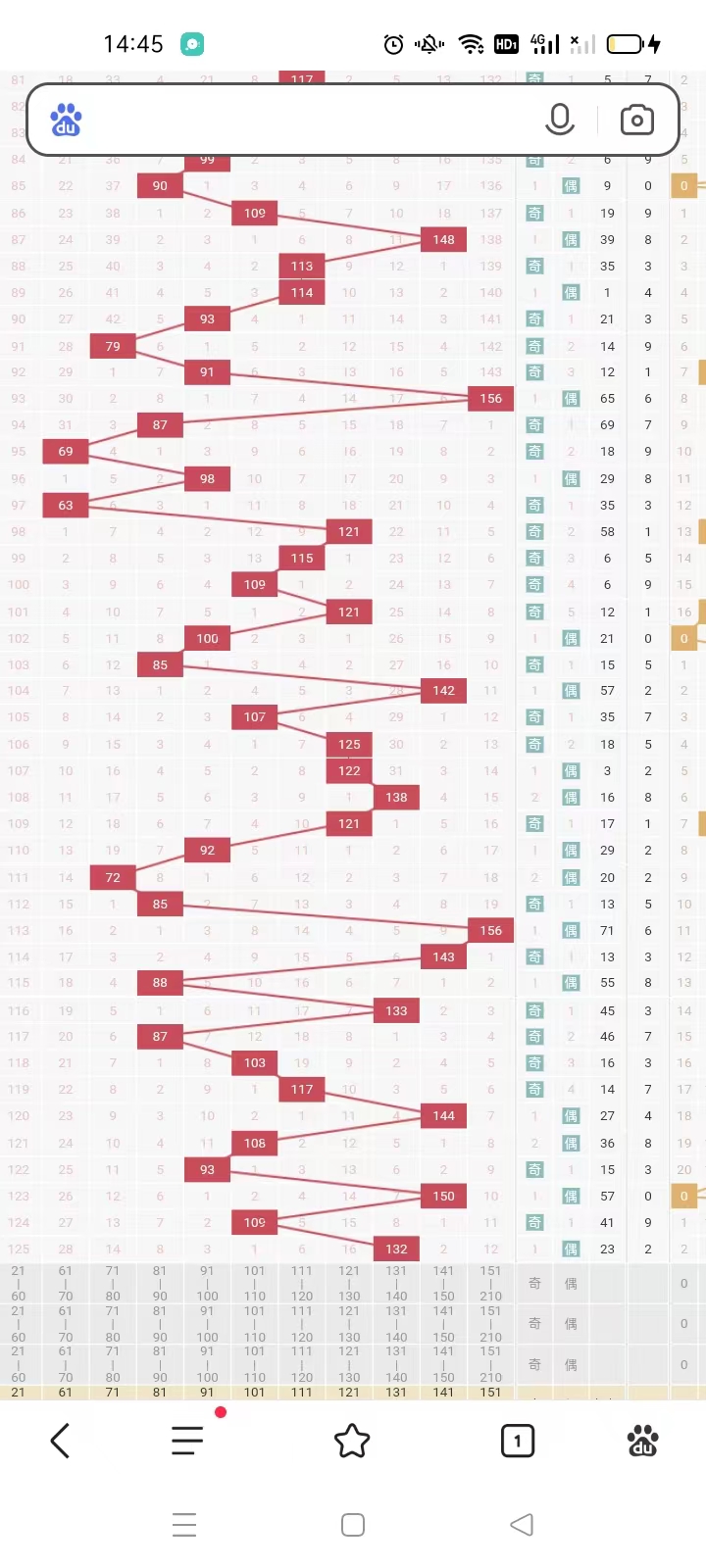 由此我们得出。十期内大于等于出现4次的胆码有02 03 15 17 24 26 28.另外06则是分别纵向竖列等间隔1期潜在趋势出现。因此可将两组数据叠加汇总综合起来。即胆码选取02 03 06 15 17 24 26 28 总共八个胆码,还是那句话,不会全出,不会一个不出,可以任选里边三个作胆码为好。同时02-06,15-17,24-28合计13个号码,密集出号区预估本期高频大概率将开出3~4个胆码.