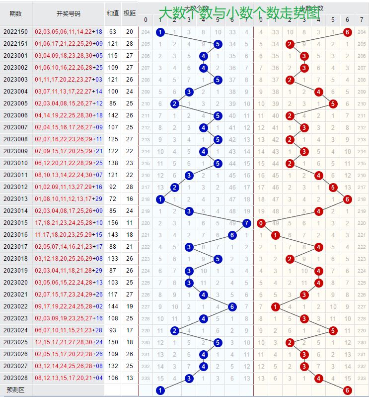 上期开奖,小数落出3码,大数落出4码,大小比:3:4;大数在连续占优的情况下,开始回归转小。本期有望继续保持往前移动,看好久未开出的遗漏值为1的小占比,本期预计1:6;小防反向开出5:2;