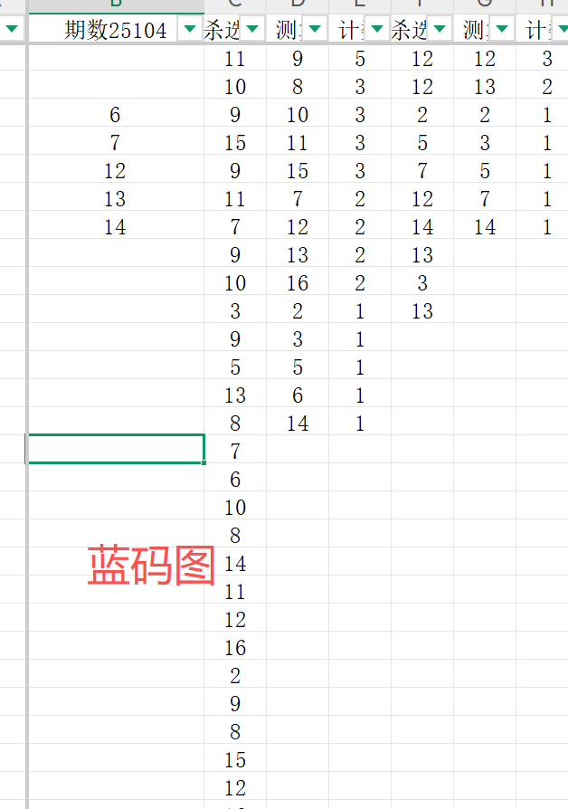 首先可以看一下蓝码的对比结果通过两个图表数据的对比,我们把蓝码的范围确定为6 7 12 13 14