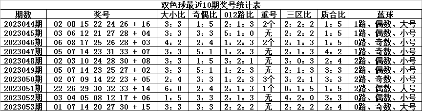 上期奇偶比为3:3,奇偶红球走势相当,近10期奇偶比为28:32,偶数开出比例较高,其中偶数红球热出4期,平衡4期,走冷2期,本期注意奇数强势回补,防开出全奇组合。