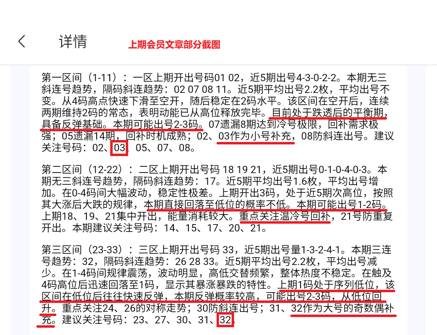 各位彩友可以根据需要购买,会员文章中每个区间给出了更加完整的分析参考,再结合自己的思路,提高命中率!