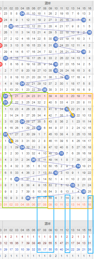 双色球上期蓝号开出一个小号奇数05号,近二十期开出了7期大号和13期小号,而近五期内开出两期小号三期大号,之前还连出过五期小号,本期继续看好大号,有十期以上没出现重号了,那么本期首先考虑继续开出05号形成重号,那么本期开出大号的概率较大如图所示蓝区的遗漏期数大的冷号很多,可以考虑遗漏期数较大的大号,比如09号、12号、16号,建议都防冷号开出。