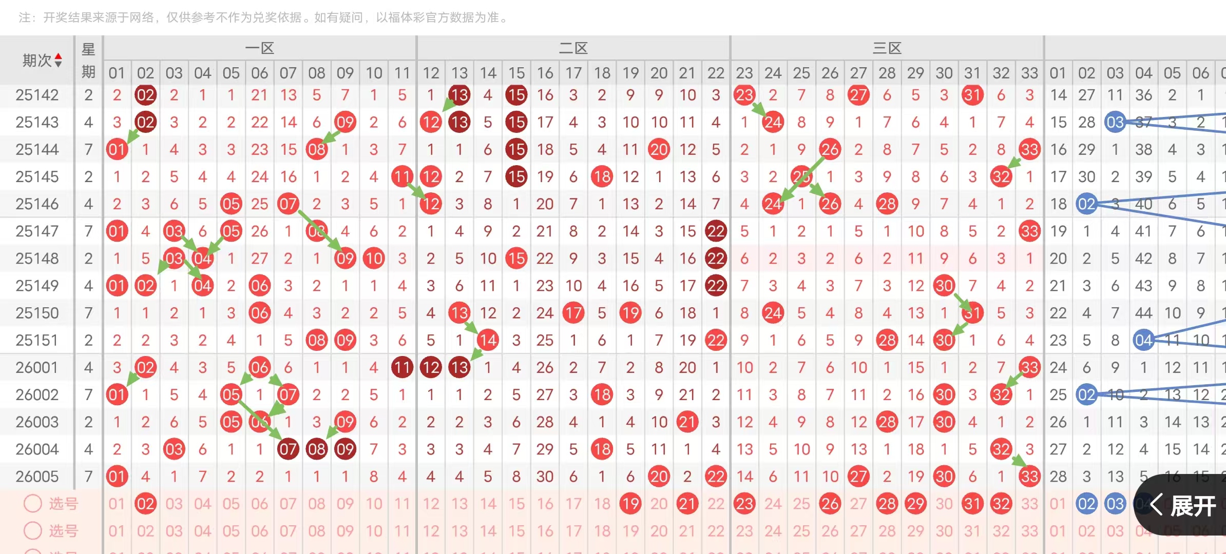 (三区:一区1-11,二区12-22,三区23-33)上期三区比1:2:3