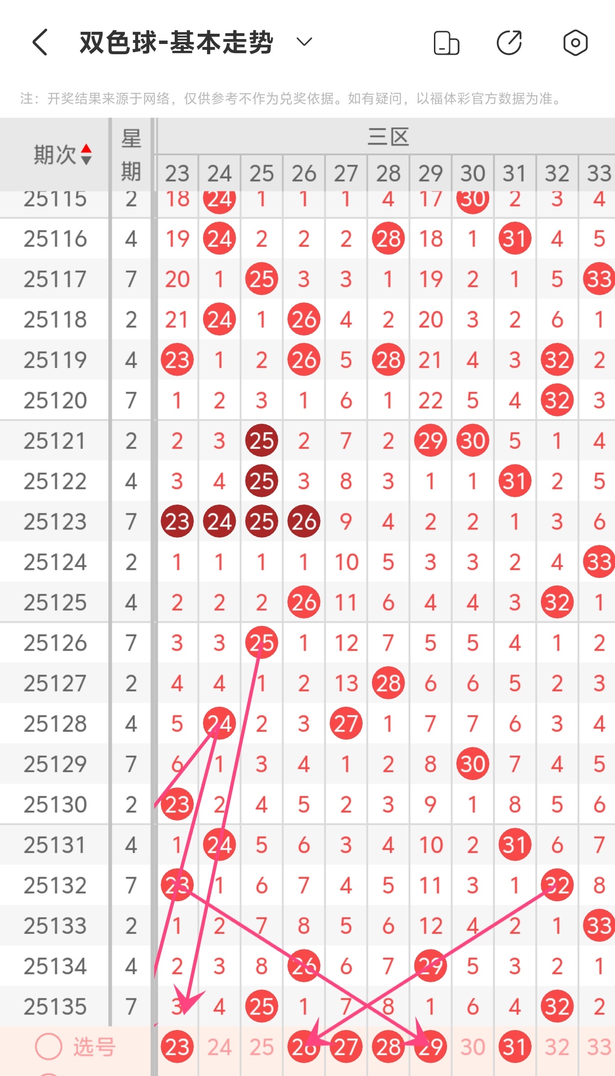 下面是我对2025136期福彩双色球的分析和预判,希望通过我的分析能让大家今晚大红!福彩双色球上期开奖号码如下图: