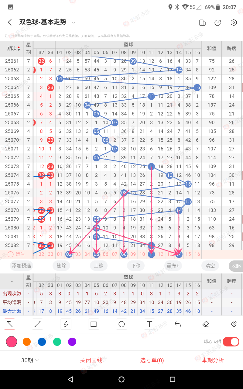 上期红5是32,红6是33二个相加1尾,010-020-025-048-052-073-079期错,即080期我们05-15可以杀号