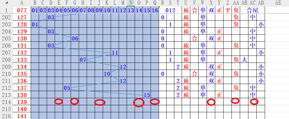 如上图4,012路分析012路,本期重点10路。重点 04 06 09 14 16