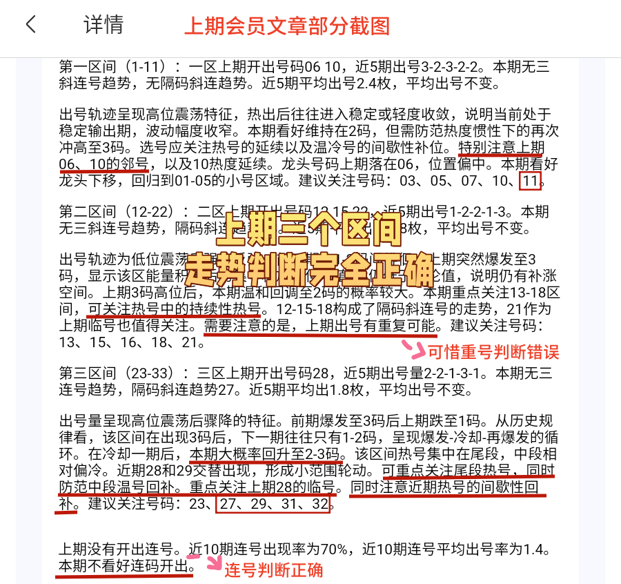 会员文章每个区间给出更详细的分析,说明整体走势的最新趋势,重号和连号均有推荐。